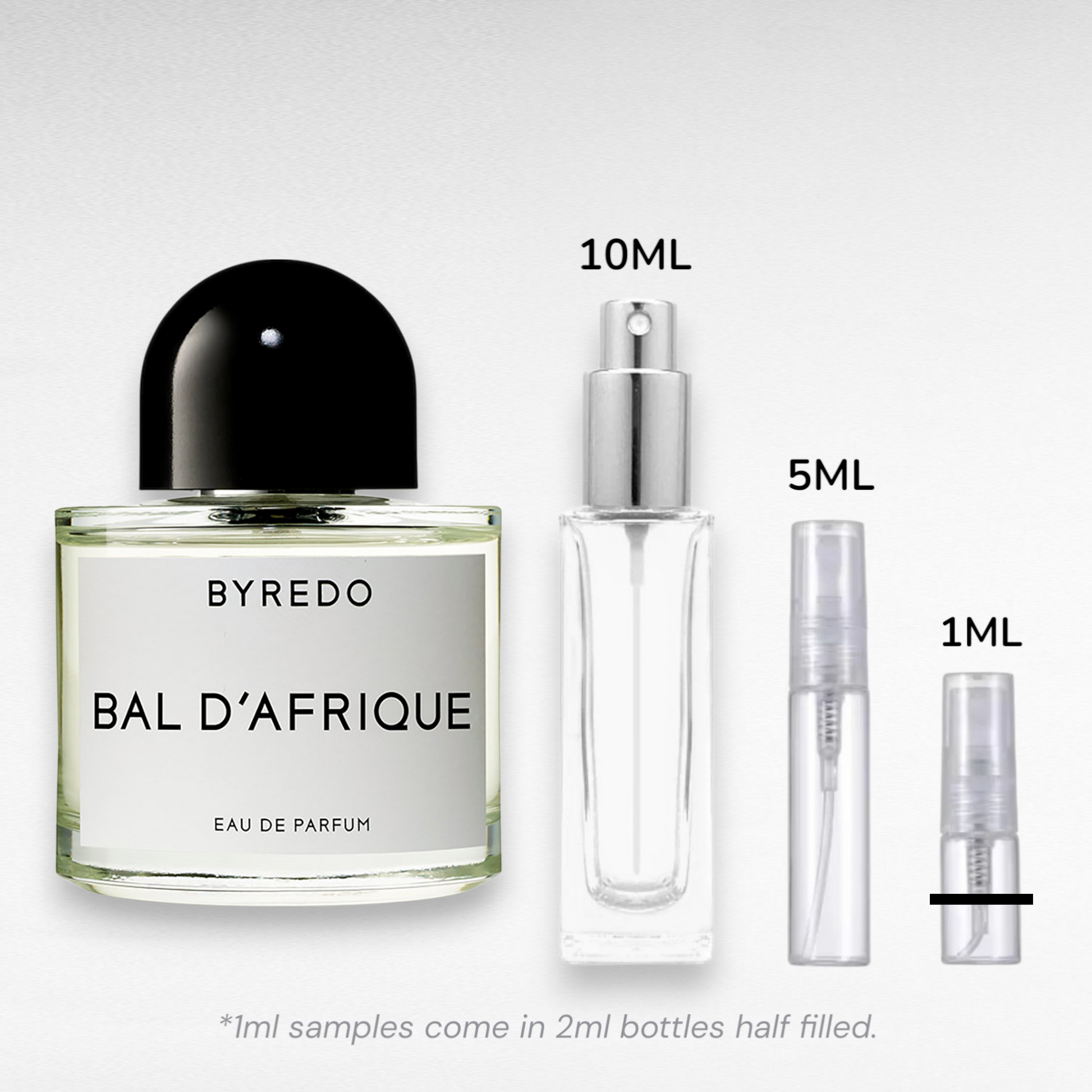 Your Bal d’Afrique sample will arrive in a premium glass atomiser, available in:
