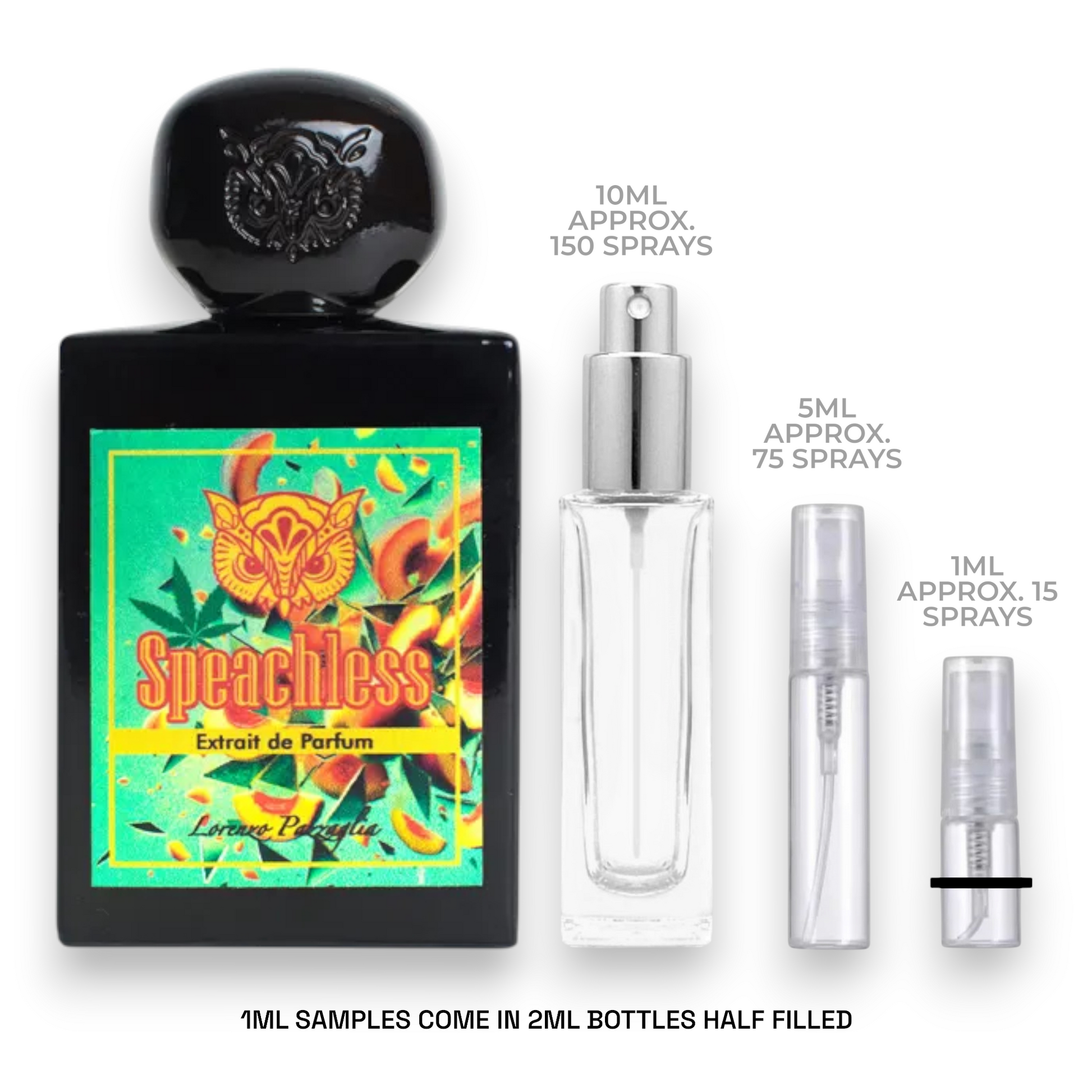 ⚠️ Please note: this listing is for a professionally decanted sample of Lorenzo Pazzaglia Speachless – Extrait de Parfum, not the full retail bottle shown. See disclaimer below.
