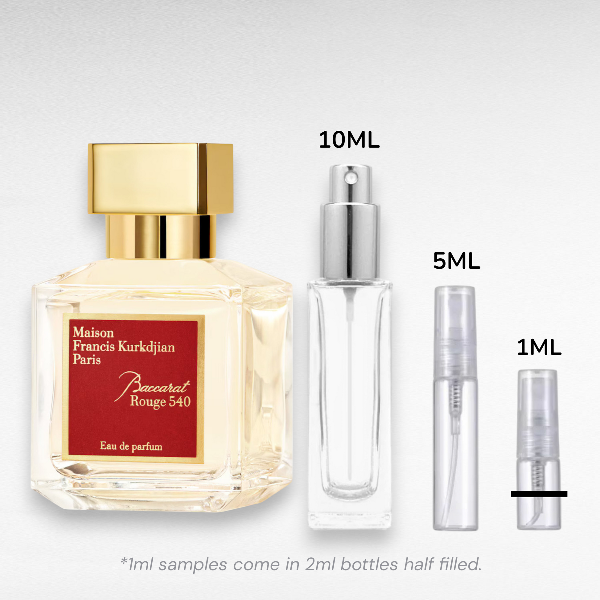 Your Baccarat Rouge 540 sample will arrive in a premium glass atomiser, available in: