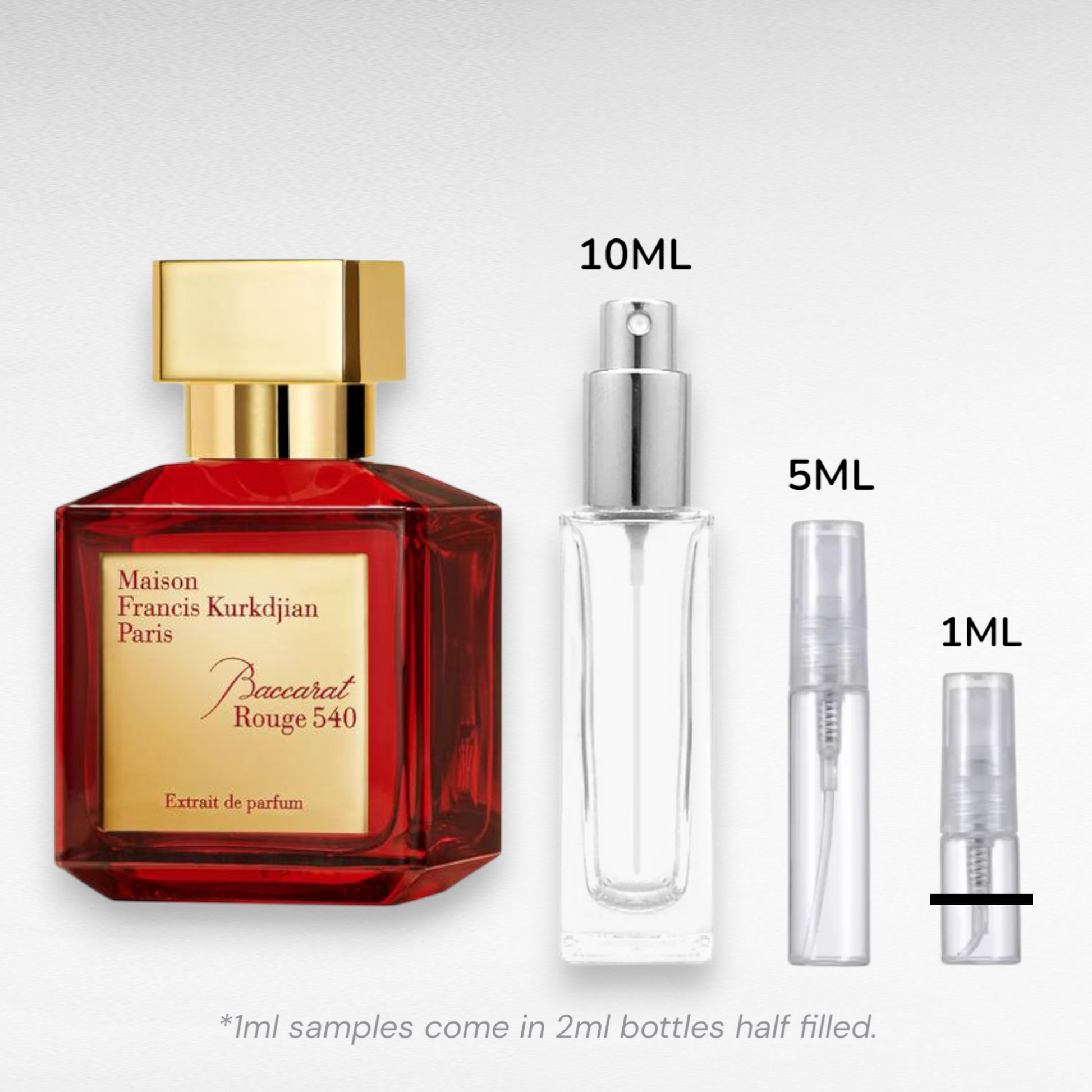 Your Baccarat Rouge 540 Extrait sample will arrive in a premium glass atomiser, available in: